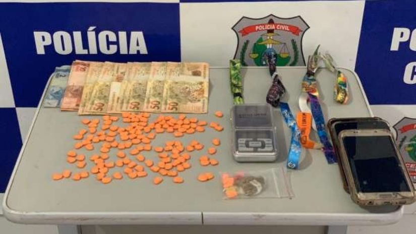 Ao todo, além das prisões, a Polícia Civil apreendeu 142 comprimidos de ecstasy, 2,5 gramas de maconha, uma balança de precisão, sete pulseiras de acesso às festas noturnas e um valor em dinheiro de R$ 386,00.