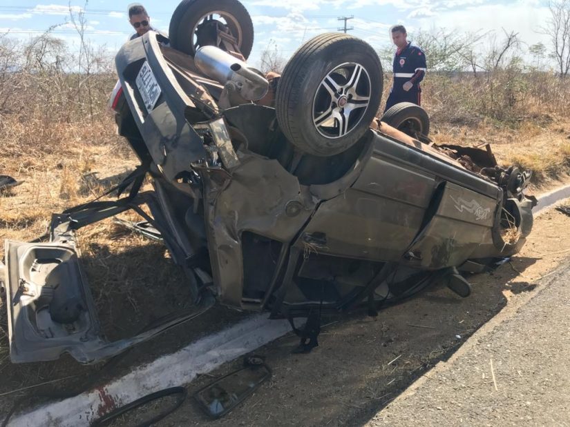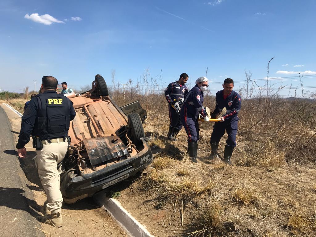 Carro ocupado por cinco mulheres capota na BR 230, próximo ao posto da PRF de Cajazeiras