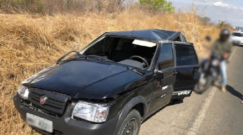 O veículo que Ecilda Ferreira Pereira, de 57 anos, conduzia com destino a Luiz Gomes-RN capotou duas vezes após ela perder o controle da direção. Apesar do susto, ela saiu ilesa.