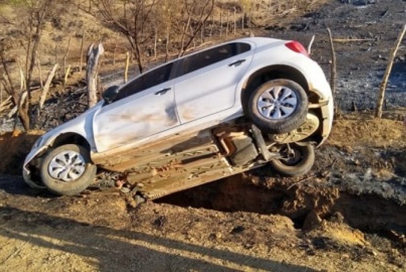 Motorista perde controle de veículo, caí em buraco e por pouco não causa tragédia, no Vale do Piancó