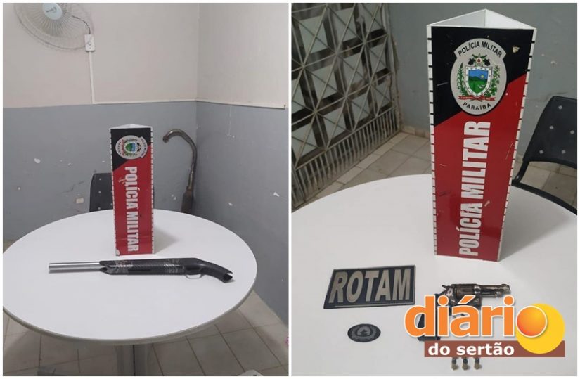 Policiais Militares do 14º BPM apreenderam neste domingo (01) duas armas de fogo durante a “Operação Cidade Segura”, na cidade de Sousa, Sertão do estado.