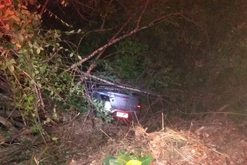 De acordo com informações da polícia militar, o motorista desviou de uma motocicleta que teria cruzado a pista, em seguida perdeu o controle do volante do carro que desceu um barranco.
