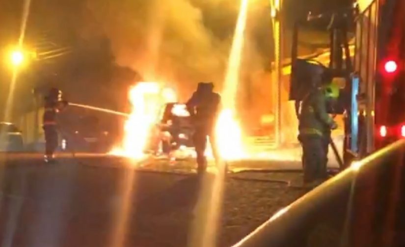 Veículo pega fogo em plena via pública na cidade de Catolé do Rocha; bombeiros foram acionados