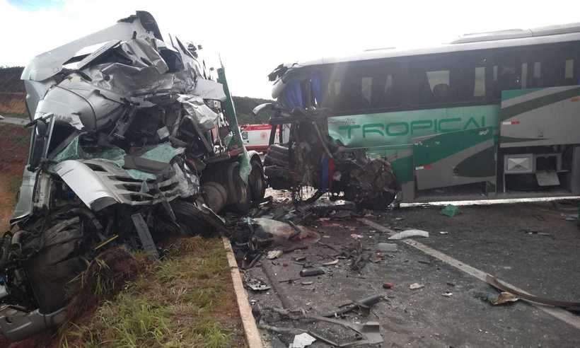 Duas pessoas morreram em um acidente na BR-251, altura do quilômetro 566, em Francisco Sá, Região Norte de Minas Gerais, nesse sábado (04). De acordo com o Corpo de Bombeiros, a batida envolveu uma carreta e um ônibus de turismo e aconteceu em um local conhecido como ‘curva do vento lateral’. Os motoristas dos dois veículos morreram.