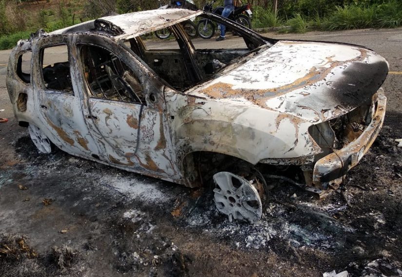 Carro é encontrado carbonizado com um corpo dentro na rodovia que liga São José de Piranhas à Cajazeiras