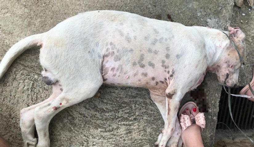 O animal que aparentemente não tinha dono foi visto caído numa rua do bairro Cristo Rei com um grande ferimento no pescoço.