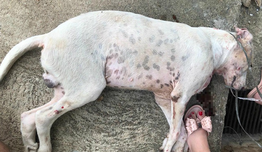 Os veterinários Wagner Pessoa e Cristina Carolino prestaram os primeiros socorros no local, mas, devido ao corte profundo e forte sangramento, o cachorro não resistiu e faleceu. De acordo com Cléo Moura, do grupo S.O.S. Pet, ninguém soube informar quem feriu o animal.
