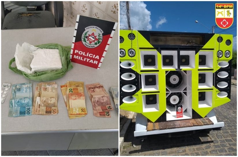Em Pombal, jovens são presos com ‘paredão’ de som, drogas e dinheiro em plena via pública