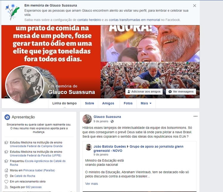 A sua página no Facebook foi alterada e está em memória a sua tragetória