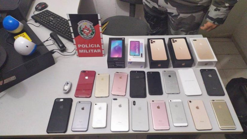Policiais militares da cidade de Sousa, recuperaram neste terça-feira (31), 15 aparelhos celulares smartphones que haviam sido roubados, prendeu dois adultos e apreendeu dois adolescentes suspeitos do assalto e de receptar a mercadoria.