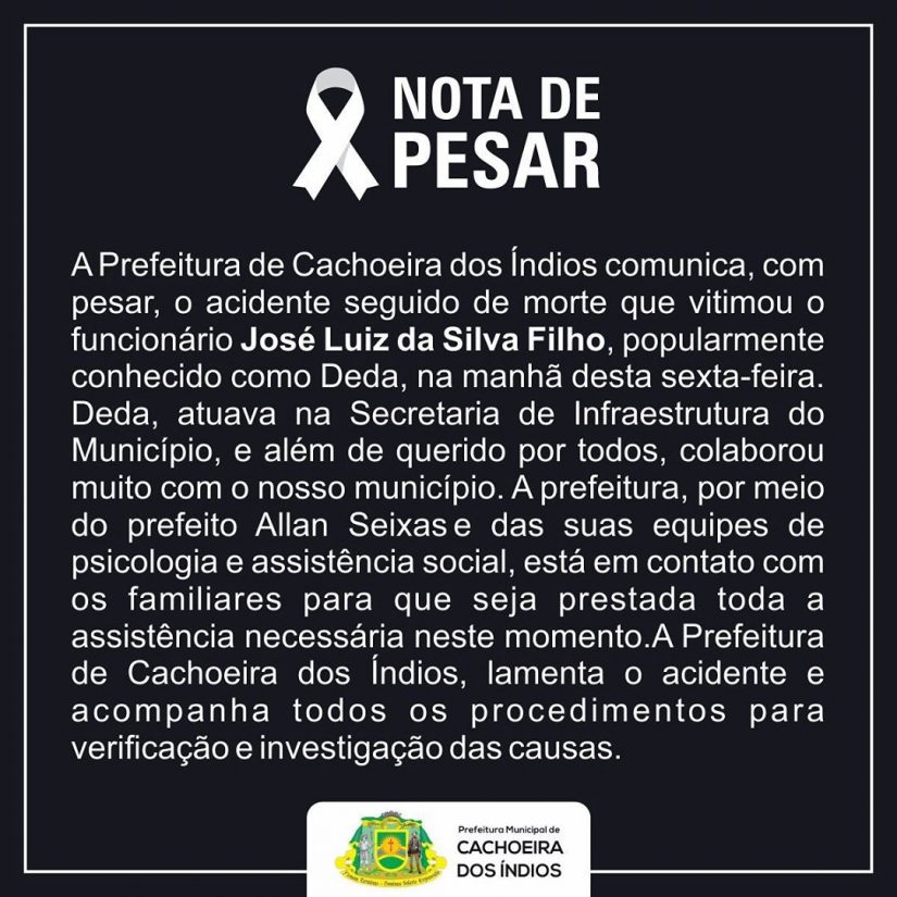 A Prefeitura de Cachoeira dos Índios emitiu nota de pesar destacando que o funcionário era querido por todos e que a prefeitura dará o suporte necessário à família