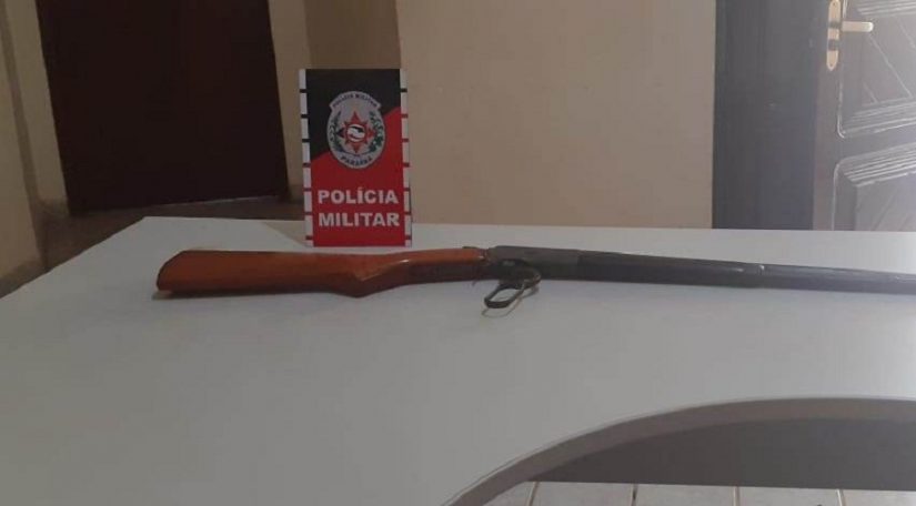 Durante busca na residência, os policiais encontraram um rifle de propriedade do suspeito, que foi levado à delegacia para serem tomadas as medidas cabíveis.