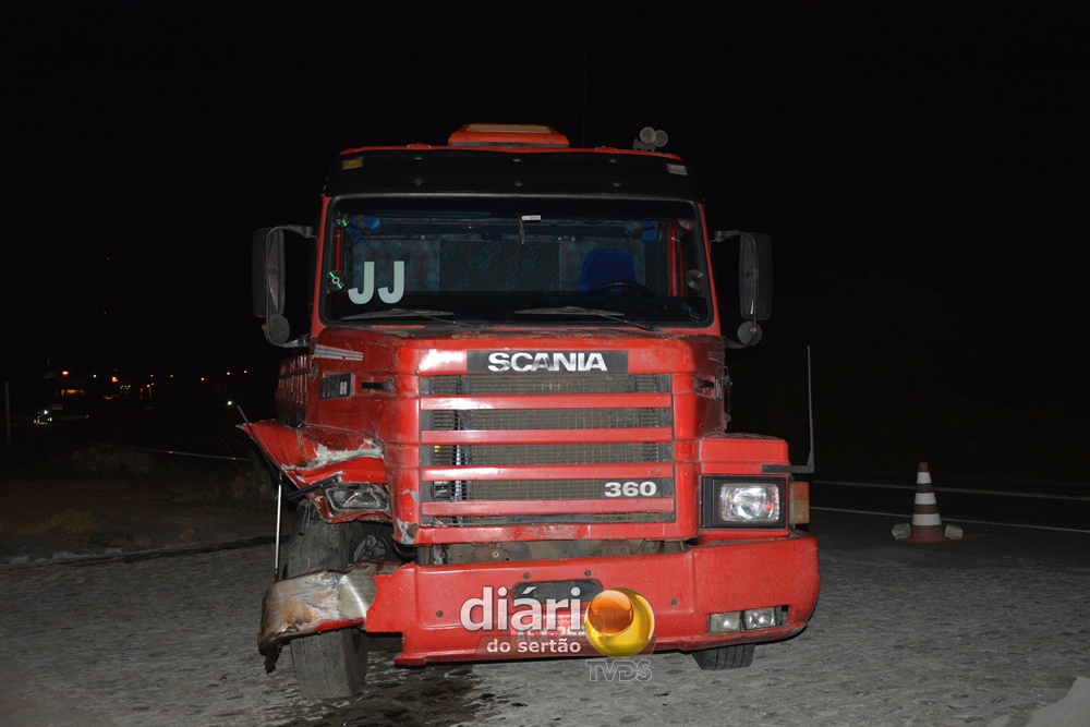 Caminhão que se envolveu no acidente na noite desta segundda-feira em Cajazeiras. Foto: Henrique Nogueira/Diário do Sertão