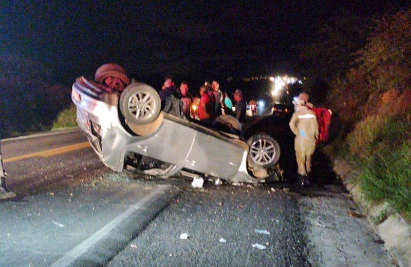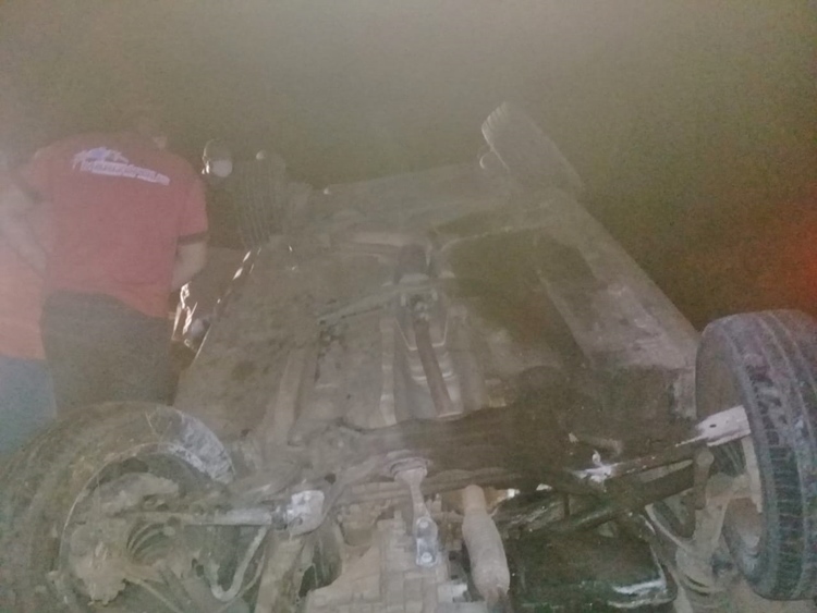 Capotamento deixou dois feridos (foto: reprodução/WhatsApp)