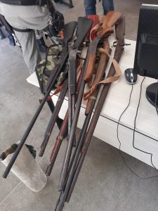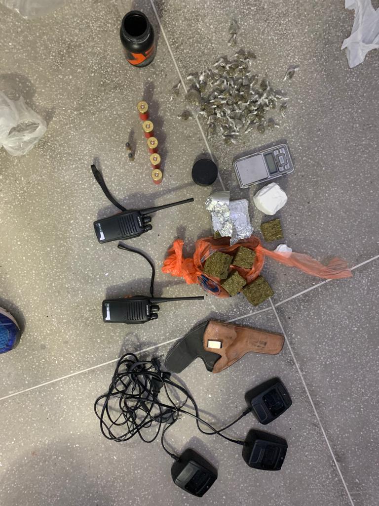 Durante a operação foram apreendidos uma espingarda calibre 12, um rifle calibre 44, um revólver calibre 38, uma espingarda calibre 36, espingardas de fabricação artesanal, munições e droga.