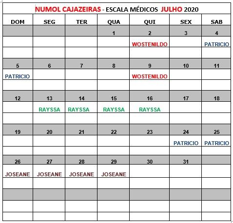 Ferreira também enviou ao Diário do Sertão, a escala de plantonistas do mês de julho. De acordo com o documento, quatro médicos estão escalados para a unidade nos dias: 02, 04, 05, 09, 13, 14, 15, 16, 24, 25, 26, 27, 28, 29. Neste final de semana, 18 e 19 de julho não há profissional disponível.