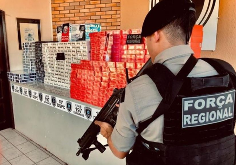Os militares realizavam check-points, quando um veículo levantou suspeitas e ao realizar a abordagem e consequente revista, foi encontrada uma carga de cigarros sem a referida documentação.