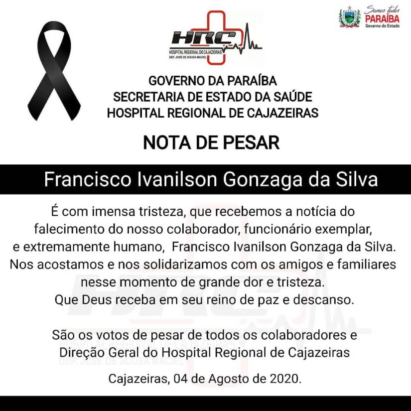 A direção do Hospital Regional de Cajazeiras emitiu uma nota de pesar pelo falecimento do jovem, ressaltando que ele era um funcionário exemplar e extremamente humano.