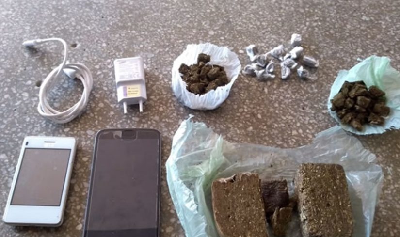 No pacote tinha dois aparelhos celulares, um carregador e uma grande quantidade de maconha.
