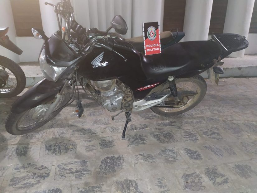 Policiais Militares do 14º BPM recuperaram na noite de sábado (21), na Rodovia Estadual PB 387 em Vieirópolis, região de Sousa, uma motocicleta roubada no vizinho estado do Rio Grande do Norte. Durante a ocorrência foi localizada uma arma de fogo do tipo revólver, calibre 38, marca Taurus, carregado e alimentado com seis munições.