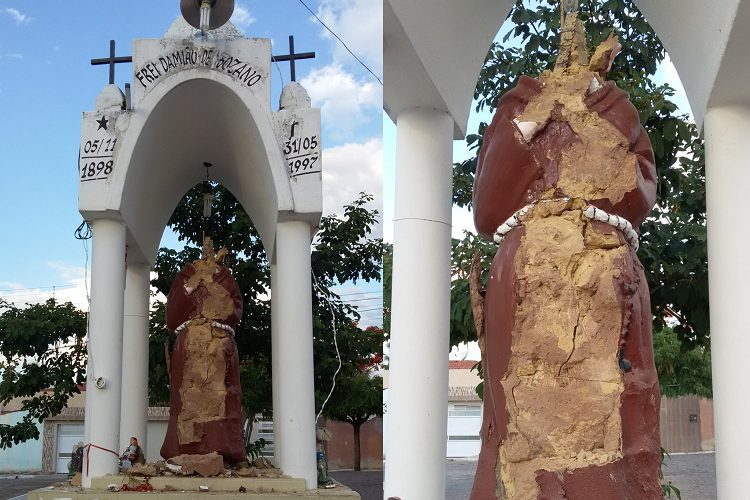 Estátua de Frei Damião é alvo de vândalos em cidade da Região de Patos