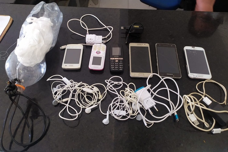 Os policiais penais conseguiram interceptar uma garrafa pet que em seu interior continha celulares, carregadores e fones de ouvido.