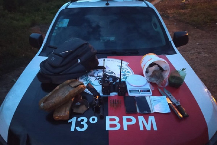 Além das prisões, a PM realizou apreensão de armas e drogas. Um revólver calibre 38 com 11 munições, duas facas, 1,8 kg de maconha, 18 gramas de cocaína, uma balança de precisão e dois rádios comunicadores.
