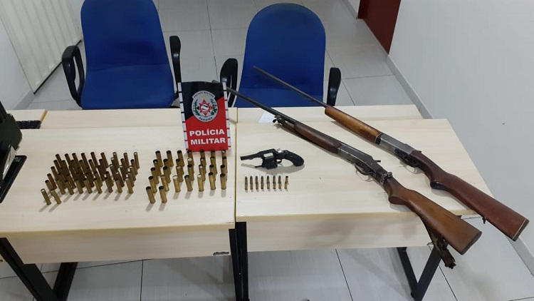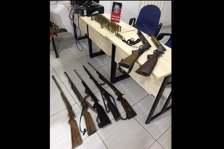 A Polícia Militar apreendeu oito armas de fogo e prendeu dois suspeitos, de 41 e 31 anos, nesse domingo (18), em uma ação realizada na cidade de Imaculada, na região de Patos. Um dos presos teria envolvimento em duas tentativas de homicídio e estaria praticando ameaças usando uma das armas apreendidas.