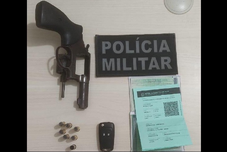 Momentos depois, a guarnição conseguiu abordar o veículo com dois suspeitos no interior do automóvel. Com os homens foram encontrados um cartucho de munição calibre 38 deflagrado e um revólver com mais seis munições intactas.
