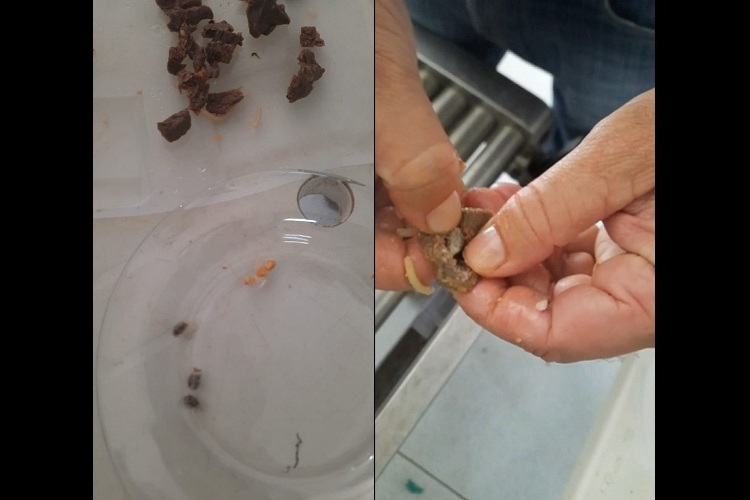 Durante a revista feita através do raio x de bagagem, foi detectada uma pequena quantidade de maconha e crack escondida dentro do alimento