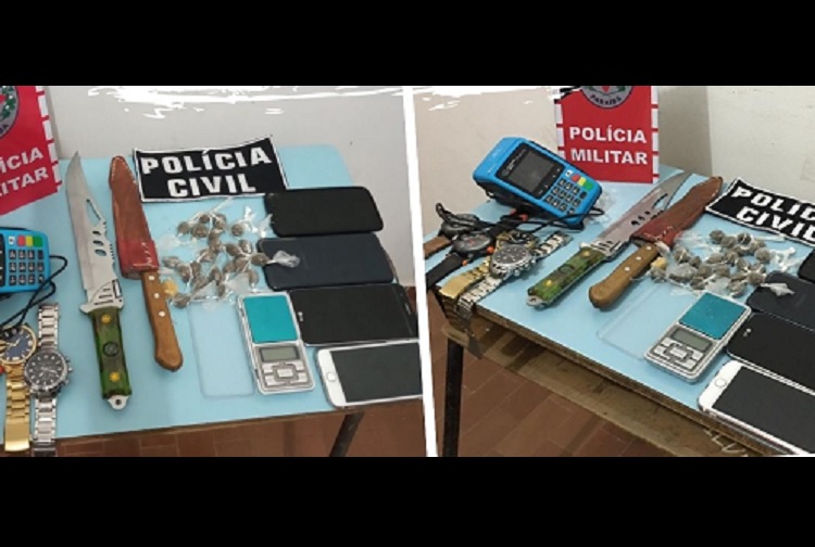 Segundo a Polícia Civil, as drogas encontradas com os suspeitos caracterizam os crimes de tráfico de drogas e associação para o tráfico. Além das drogas foram apreendidos quatro celulares, duas facas peixeiras e uma balança de precisão.