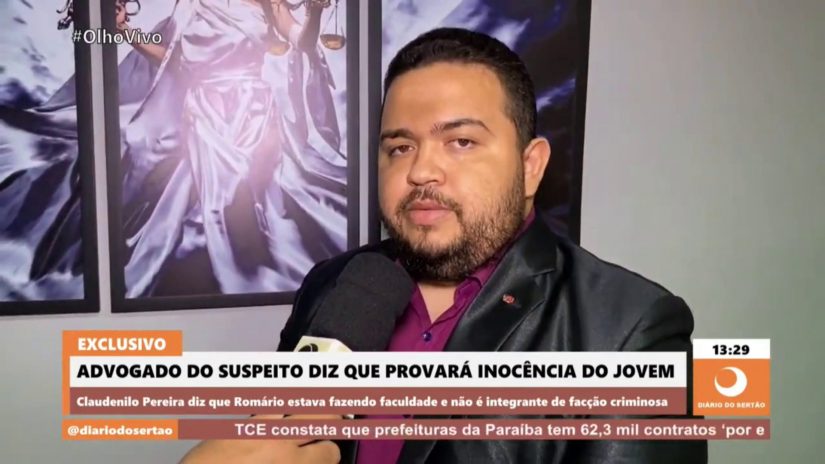 A reportagem da TV Diário do Sertão procurou o advogado Claudenilo Pereira, responsável pela defesa de José Romário, logo após a transferência do suspeito para o presídio. De acordo com o advogado, no momento do crime, Romário estava em casa com sua filha e irmã.