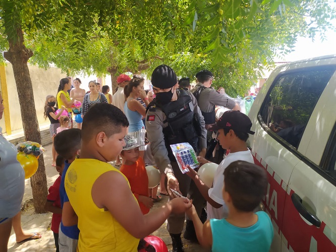 Policiais do 6º BPM realizam Operação Criança Feliz em Cajazeiras com entrega de brinquedos e guloseimas