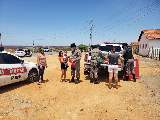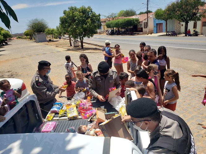Policiais militares do 6º Batalhão realizaram na manhã desta terça-feira (12), a distribuição de brinquedos e guloseimas nas comunidades com maior vulnerabilidade social de Cajazeiras, especificamente na zona rural do município. A ação se deu em cumprindo à diretriz do Comando Geral da PMPB.