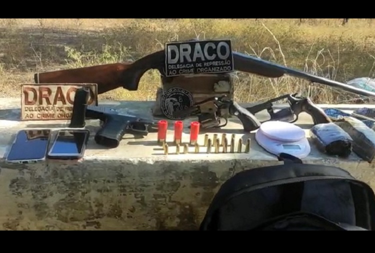 Com os suspeitos foram apreendidas quatro armas de fogo, sendo uma espingarda cal .12, uma pistola cal .380 e dois revólveres cal .38, além de cerca de 4 quilos de maconha que estava dentro do veículo usado pelos criminosos.