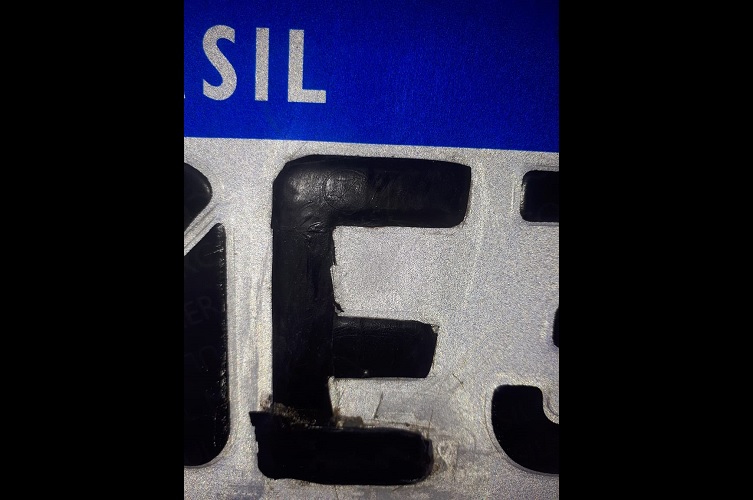 Após averiguação, os PMs verificaram que um dos dígitos da placa estava adulterado com uma fita isolante. A PM realizou uma consulta no sistema e constatou que o automóvel era produto de roubo.