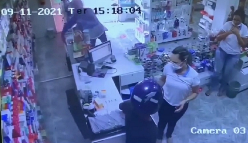 VÍDEO: Dupla de assaltantes rouba farmácia na cidade de Patos e subtraem dinheiro e celulares