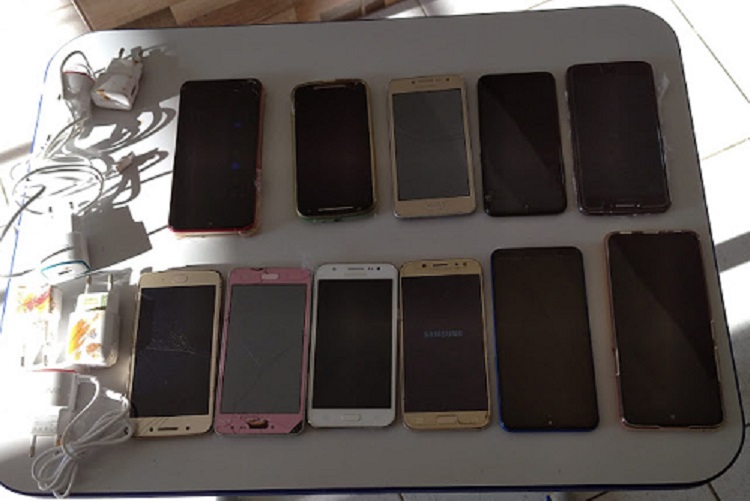 Os agentes abordaram os indivíduos e realizaram uma revista em uma sacola que eles portavam e encontraram os celulares, carregadores e os fones de ouvido.