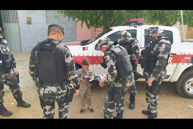 O pai do pequeno Davi Elias Belo da Silva que completou 5 anos nesta terça e reside no Conjunto Chagas Soares, convidou os PMs para o aniversário do garoto que tem o sonho de um dia ser policial