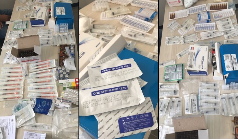A Polícia ficou surpresa ao encontrar no interior da casa, vários materiais e exames hospitalares, tais como: seringas, máscaras n95, luvas descartáveis, testes rápidos de HIV, testes de COVID, ampolas para tratamento de sífilis, além de vários cartões de vacinação em branco.