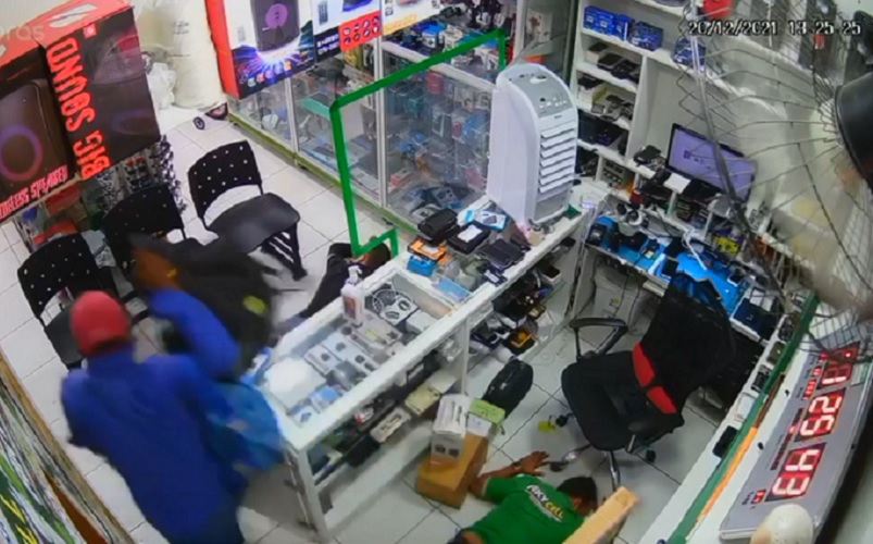 Uma loja de venda de celulares foi assaltada na tarde desta segunda-feira (20) no Centro da cidade de Uiraúna, na região de Cajazeiras. As imagens das câmeras de segurança do local registraram toda a ação dos meliantes.