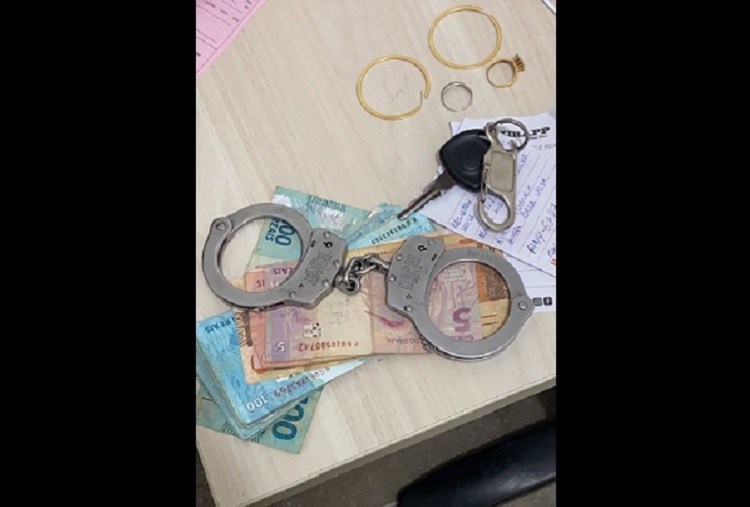 Os PMs imobilizaram o indivíduo e ao realizar uma revista, encontraram uma quantia de R$ 2.425,00, dois anéis, um par de brincos e anotações com os dados das vítimas.