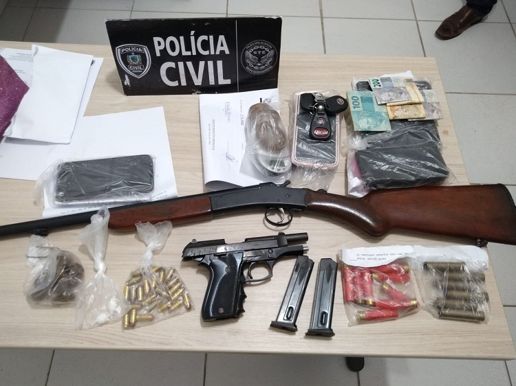 Durante a operação foram apreendidos um veículo, 12 celulares, uma faca peixeira com aproximadamente 13 polegadas, um pendrive, uma balança de precisão, um cachimbo, dois trituradores, cinco cartuchos calibre 32 deflagrados, um relógio, uma maquineta de cartão, uma placa de motocicleta padrão Mercosul, uma agenda, um binóculo, uma capa camuflada de espingarda, uma arma de fogo calibre .380 da marca Taurus, 23 cartuchos de cal.380, uma motocicleta sem placa, uma certa quantia em maconha, embalagens para comercialização da droga, papeis seda, duas embalagens contendo substâncias análoga à cocaína, um caderno contendo a contabilidade do tráfico, uma carta de um presidiário endereçado a um dos presos na operação e a quantia de R$ 4.310,00 ( Quatro mil trezentos e dez reais).