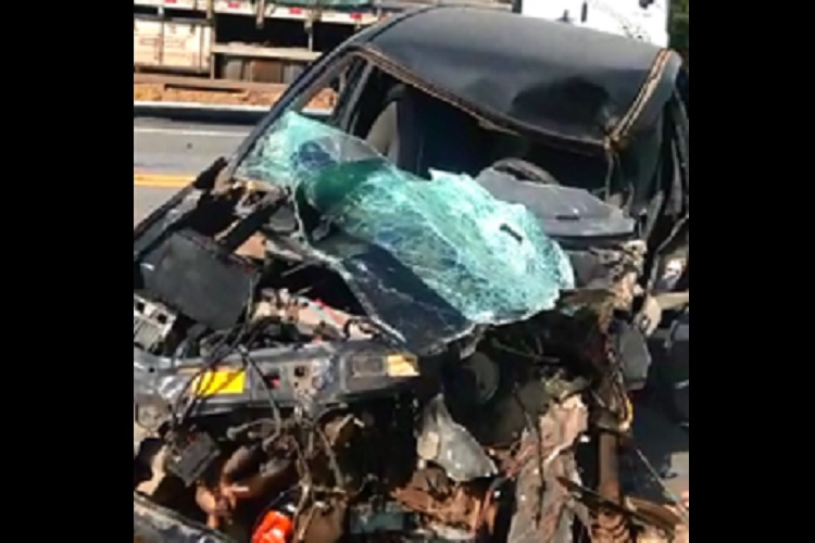 Estado em que ficou o carro após colisão. (Foto: print de tela de vídeo reproduzido em redes sociais).