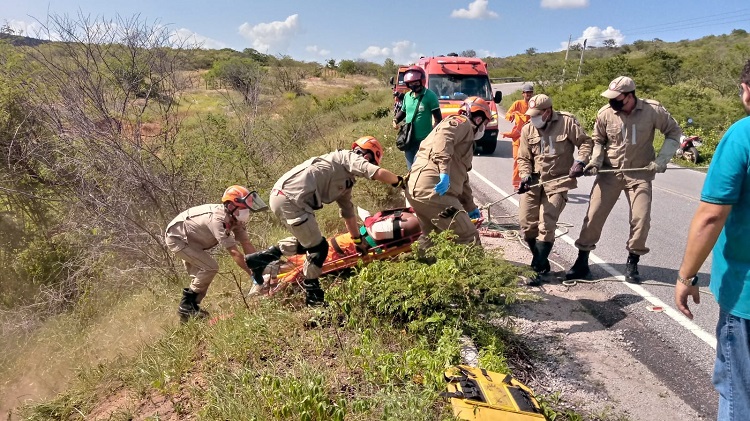 O Corpo de Bombeiros de Pombal disse que o motociclista, ao cair no barranco bateu em uma árvore e foi arremessado por cerca de 5 metros