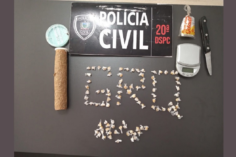 A polícia informou que o meliante conseguiu foragir, mas acabou deixando para trás 90 pedras de crack, uma balança de precisão e materiais de comercialização da droga.