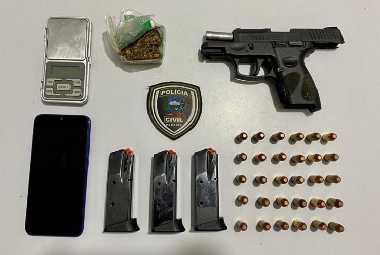 Durante o cumprimento dos mandados, a Polícia Civil apreendeu na posse de um dos investigados uma pistola do mesmo calibre utilizado no crime que vitimou a pessoa de Paulo César de Oliveira Dutra no dia 29 de julho deste ano, naquela cidade. Além da arma de fogo, a equipe policial encontrou droga ilícita com o investigado, o qual também foi autuado em flagrante delito por tráfico de drogas.