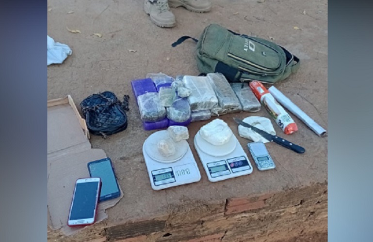 Segundo a polícia, foram apreendidos 5 quilos de maconha, 300 gramas de crack e 390 de cocaína. A droga estava dentro de um buraco, no quintal da residência