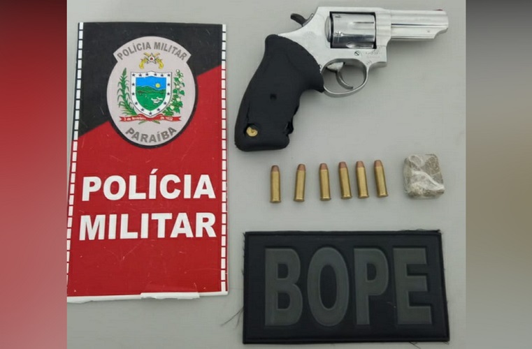 Um indivíduo de 38 anos foi preso na noite deste sábado (08) no Conjunto Santa Clara, zona oeste da cidade de Patos, Sertão da Paraíba. Segundo informações da Polícia Militar, o suspeito foi detido por está portando um revólver calibre 38 com seis munições intactas e uma porção de uma substância análoga à maconha.