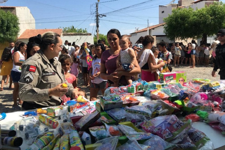 O 6º BPM realizou no último sábado (15) no bairro dos Remédios, na zona sul de Cajazeiras, a entrega de brinquedos, pipocas, guloseimas e cestas básicas, fazendo a alegria de várias crianças. A ação faz parte da Operação ‘Criança Feliz’ desencadeada em todo o Estado da Paraíba.